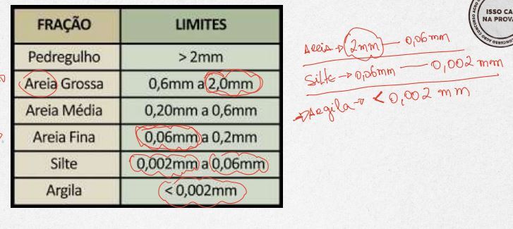 ( ) Partículas denominadas de areia são aquelas com diâmetro entre 5 e 10 mm.