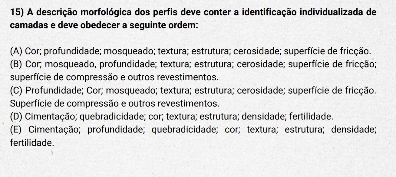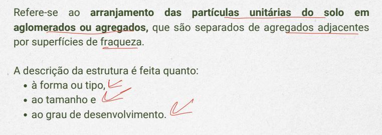 ( ) A estrutura do solo descreve a maneira como as partículas do solo estão agregadas.