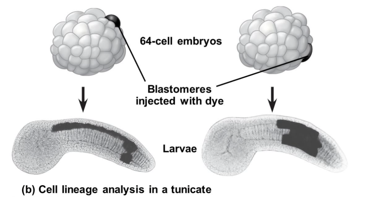 o Biologist use a __ to mark cells during cleavage and track their developmental fate (e.g. in unicate)