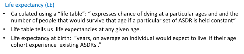 Adding together all ASDR adjusted (weighted) by the proportion of each age group in the total population. Can be used to compare countries with dif age structure.