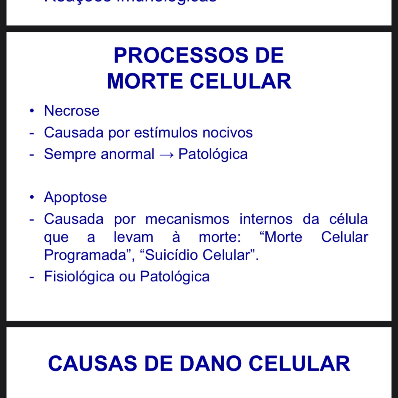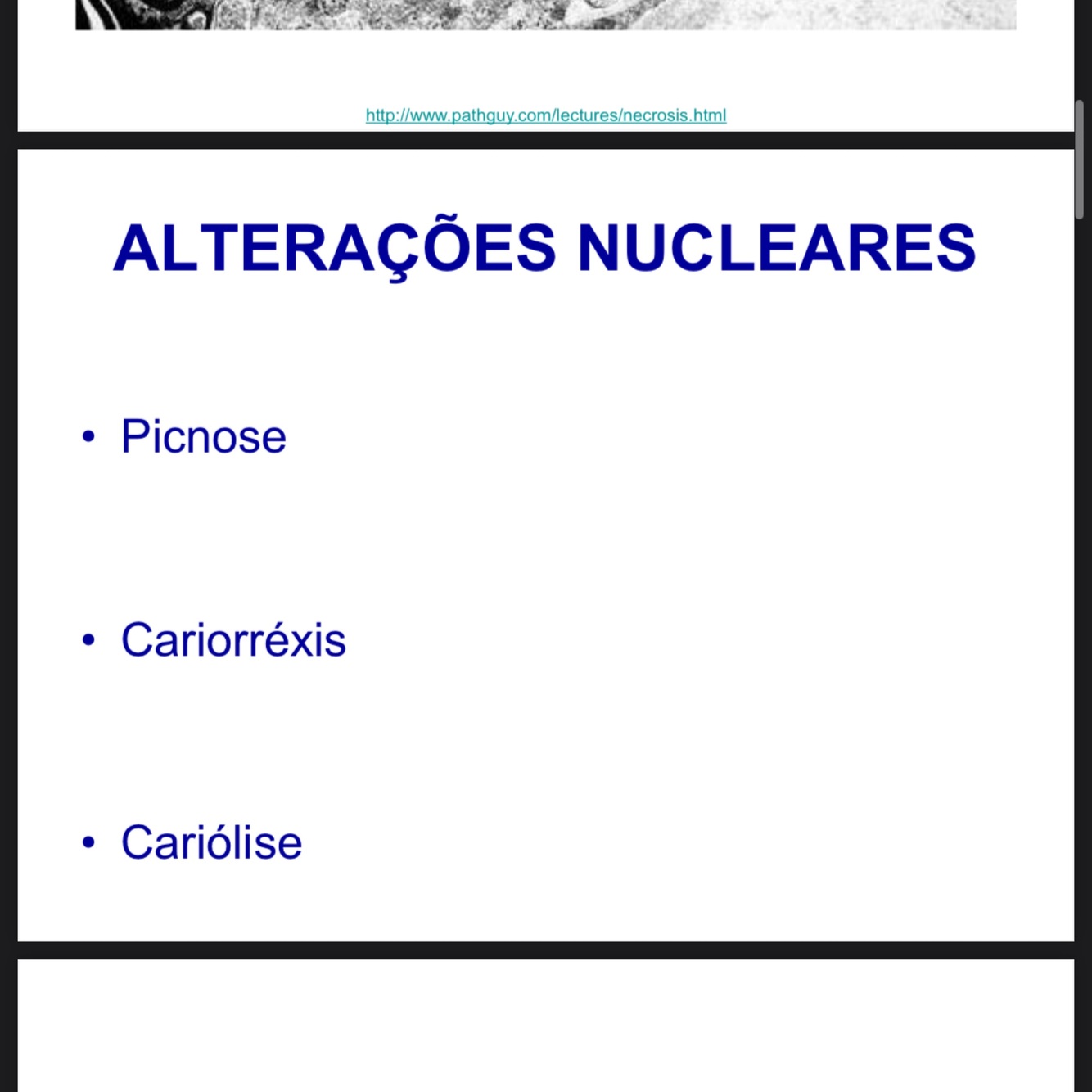 Essas alterações estão geralmente associadas à necrose, que é um tipo de morte celular patológica, mas também podem ocorrer em certos contextos de apoptose (morte celular programada).