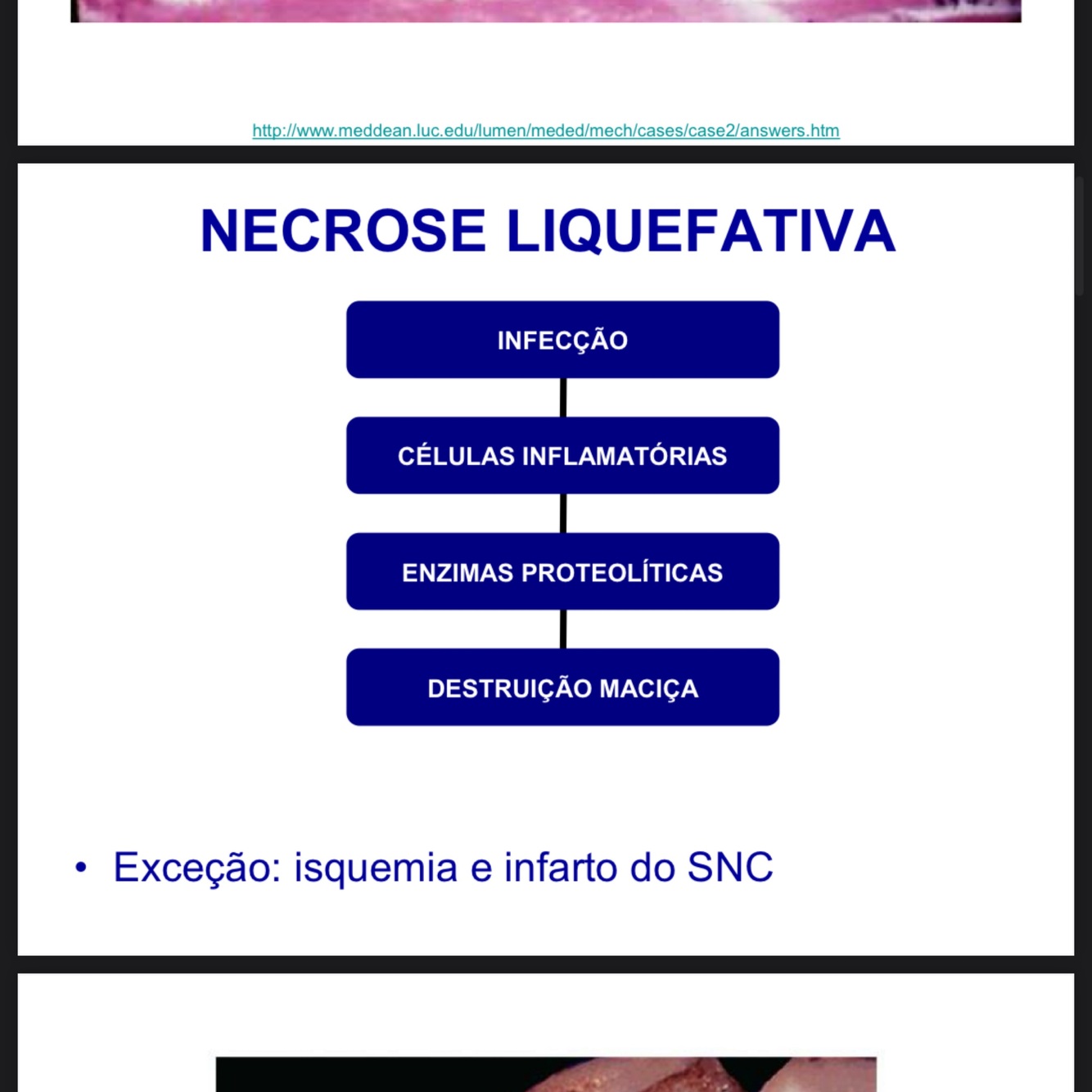 • Uma combinação de necrose coagulativa e liquefativa, muitas vezes associada à infecção bacteriana secundária.