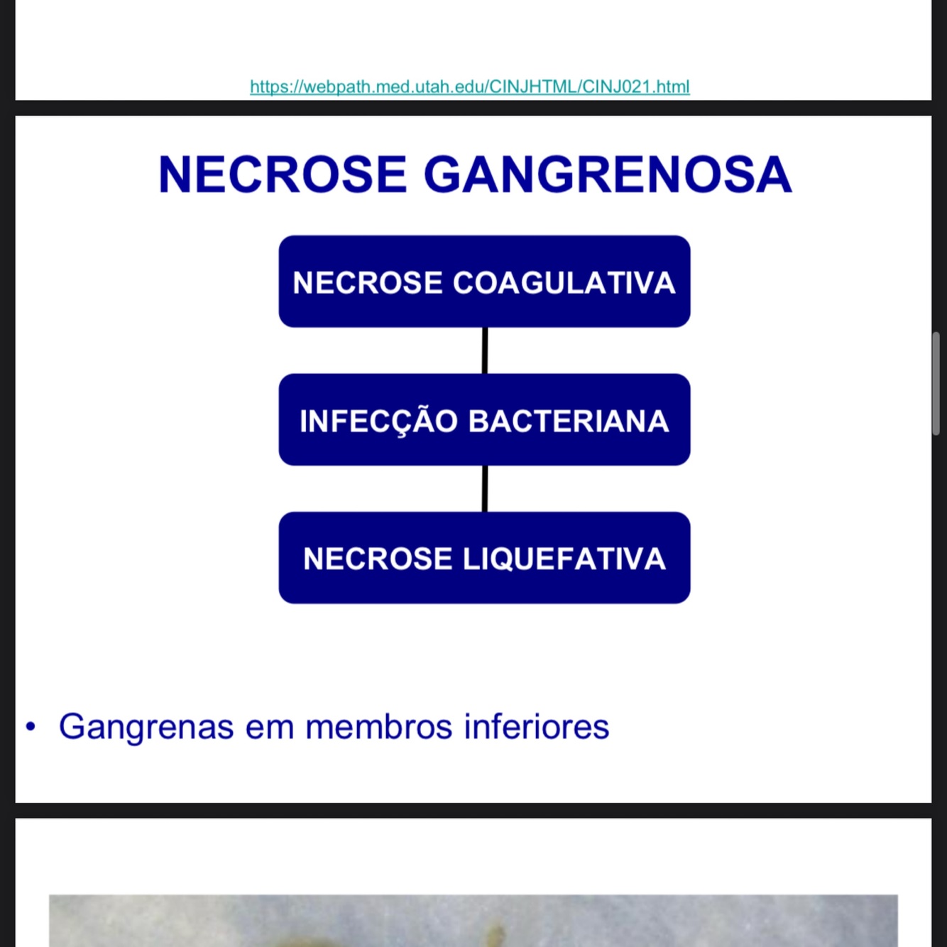• Pode ser classificada em gangrena seca (sem infecção bacteriana significativa) ou gangrena úmida (com infecção bacteriana).