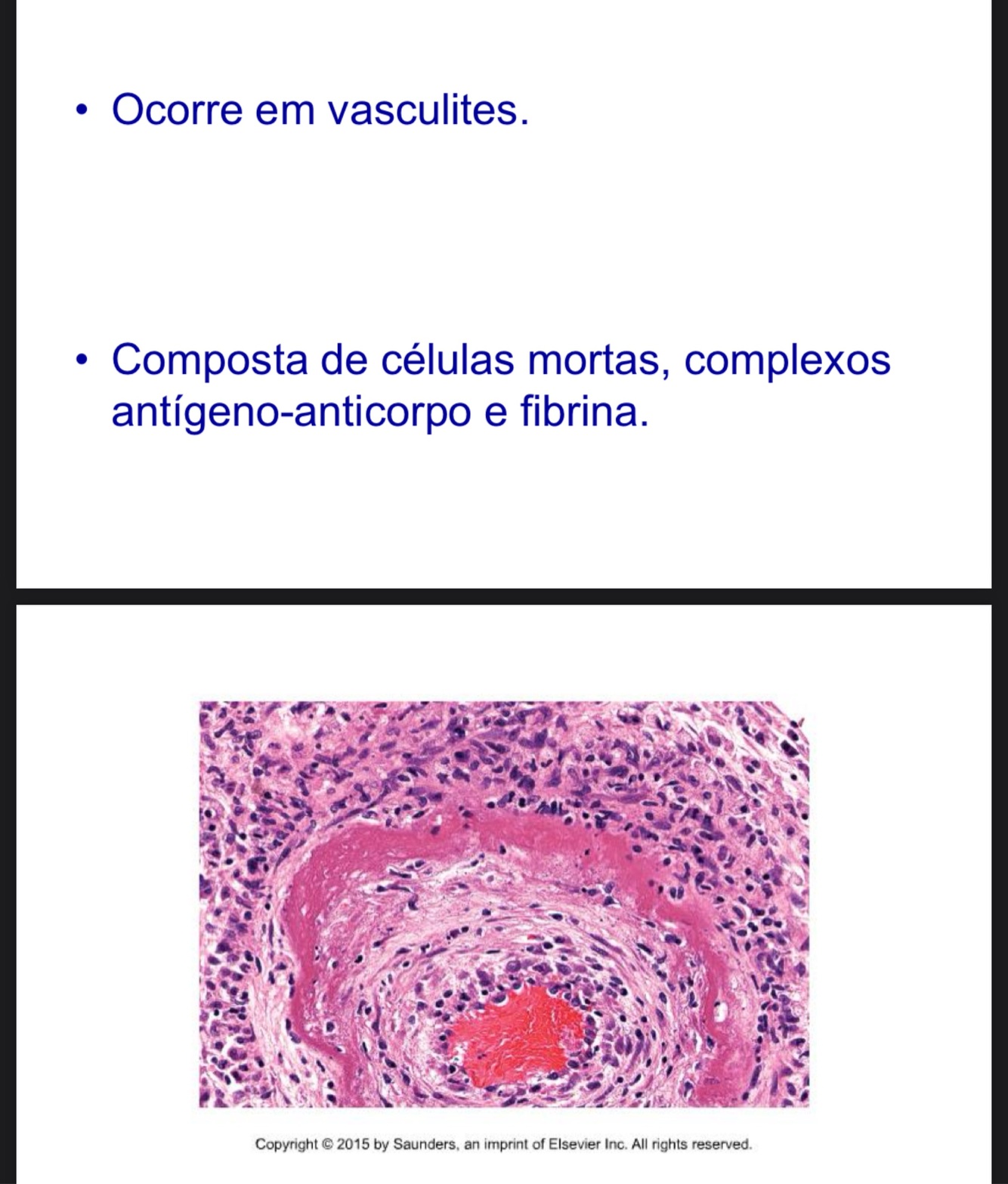 • Ocorre em paredes de vasos sanguíneos, geralmente associada a doenças autoimunes ou inflamação grave.