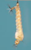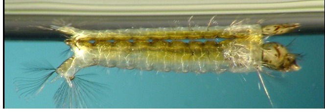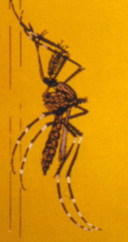 Anopheles - note the 45 degree angle of its abdomen in air taking a blood meal!