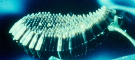 comma shaped, swims but does not feed. Trumpet is short but opening broad.