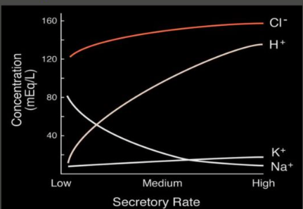 very low in the morning and rising to highest around 10 pm. it doesnt appear that this is due to gastrin since gastrin levels remain the same throughout the day