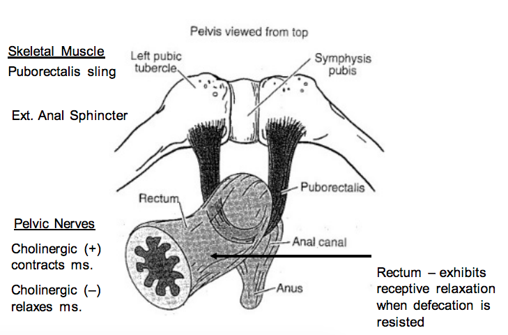 –> internal anal sphincter can contract again, so you don’t need the voluntary contraction of the external anal sphincter & puborectalis muscles