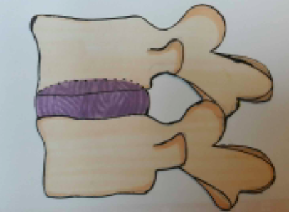 Two adjacent vertebral bodies and the soft tissue between them.