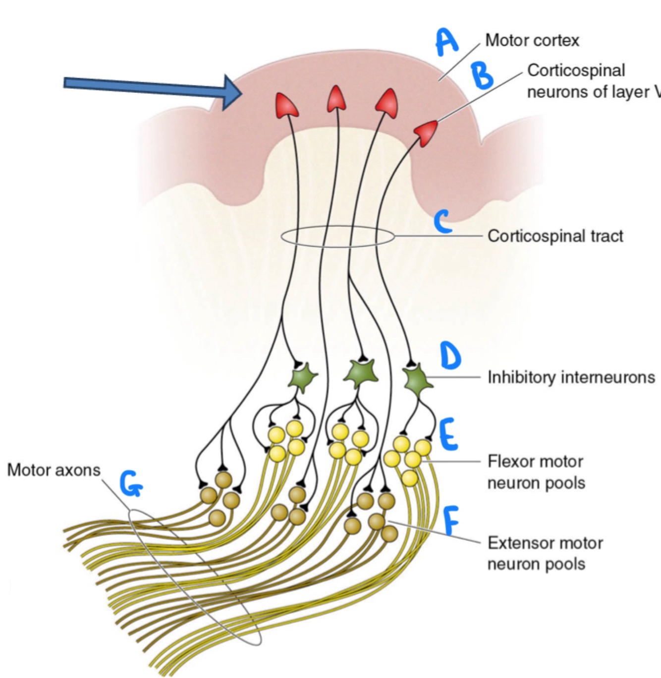 if you want to flex the elbow, you will excite flexor muscles and inhibit extensor muscles