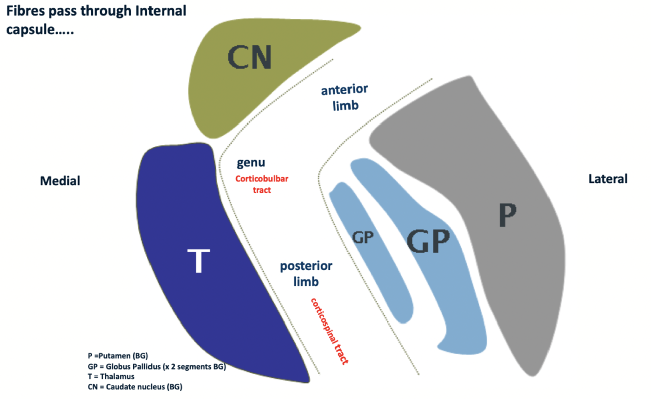 it separates the putamen and globus pallidus from the thalamus and caudate nucleus