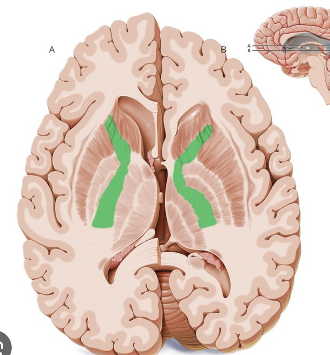 a white matter pathway located between the thalamus and the basal ganglia