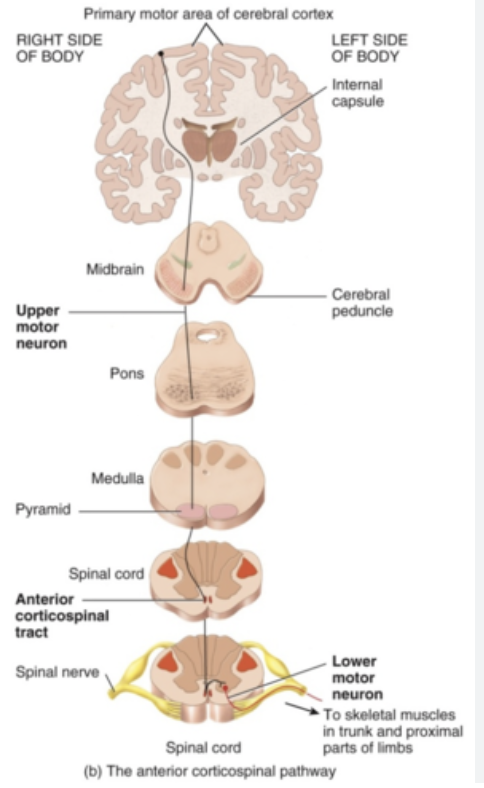 describe the anterior corticospinal tract