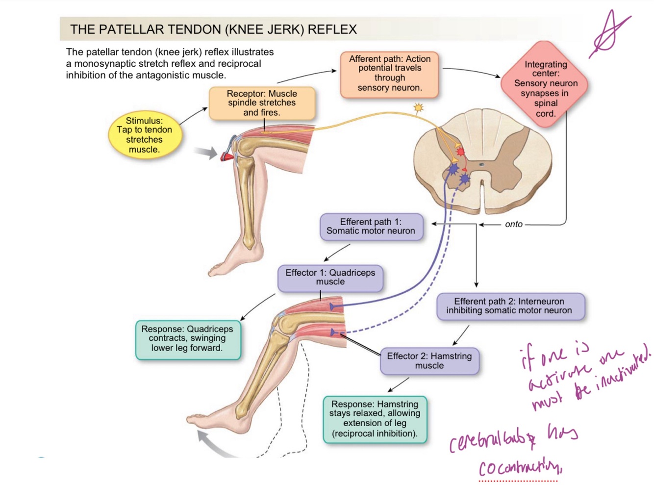 Inputs the actívate neurons that flex the muscle generally inhibit other neurons that extend and vise versa.
