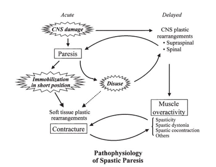 what is a typical cause of spasticity and a common result/association?