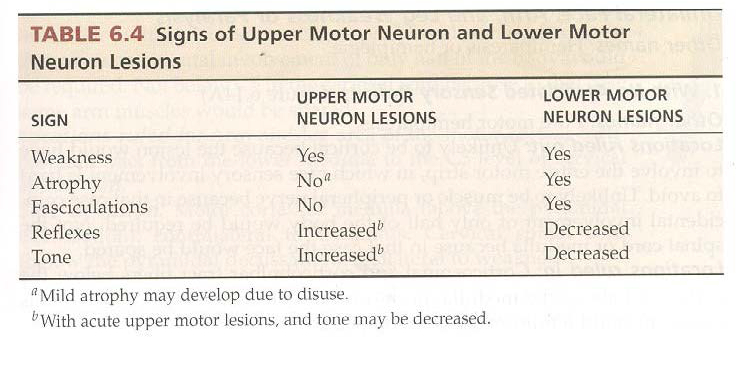 What are the clinical signs of upper motor neuron and lower motor neuron lesions?
