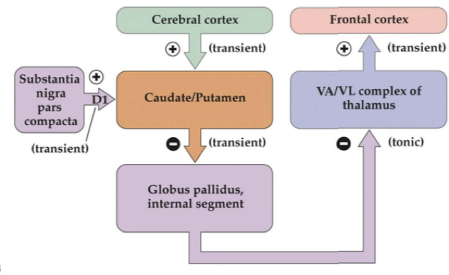 Under vaniga förhållade så bromar Globus pallidus interna Thalamus och därmed filtrerar vilken sorts rörelser som går fram till motorbarken.