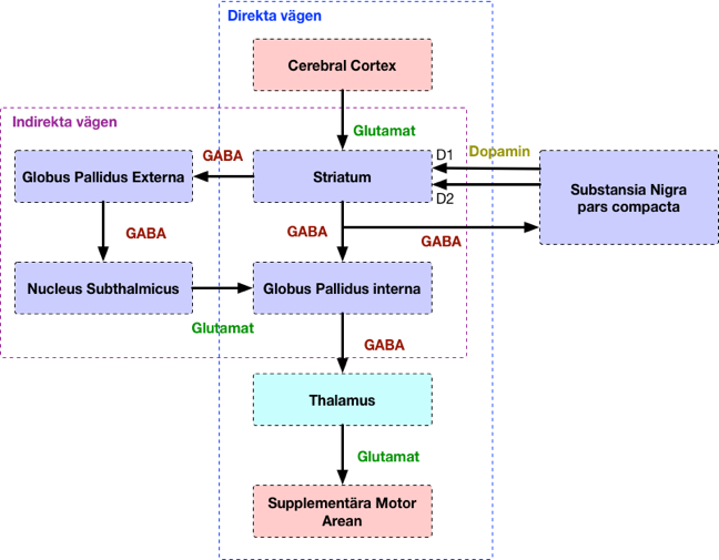 hur påverkar dopamin indirekta och direkta vägen?