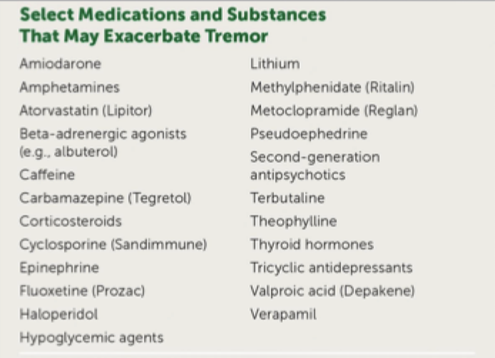 what meds and substances exacerbate tremors
