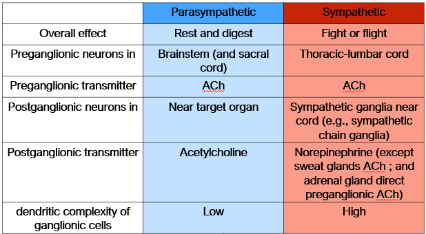 In this system, there’s only cholinergic neurotransmission. Furthermore, the ganglia of this system are much closer located to the target tissue.