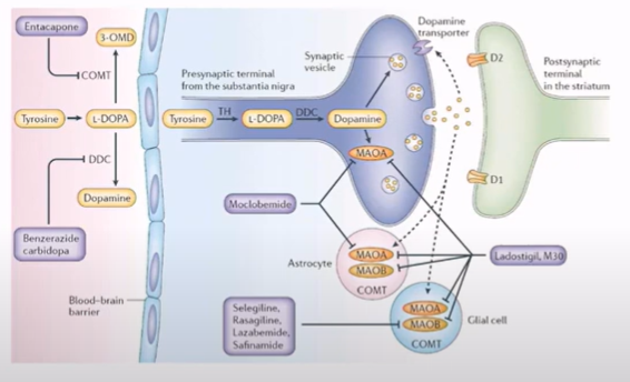 In contrast, MAO converts dopamine to 3,4-dihydroxyphenylacetaldehyde, which is then converted by aldehyde dehydrogenase (ALDH) to DOPAC.