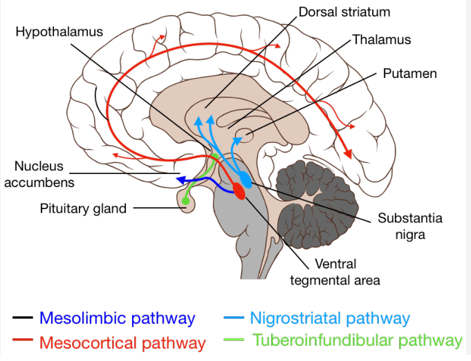 1) Mesolimbic pathway: (μεσομεταιχμιακή)