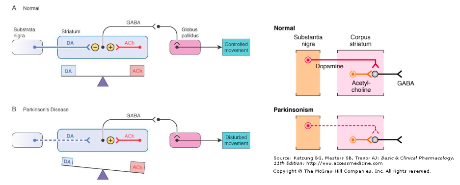 Under normal conditions, dopaminergic neurons originating in the substantia nigra inhibit the GABAergic output from the _________