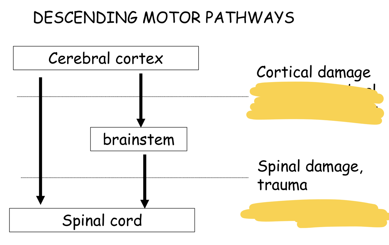 most important route through which goal directed movements of the limbs are driven, especially movements of the hands, feet and face (and other prehensile structures, like the lips).