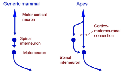 a distinct corticospinal tract that has a direct effect spinal interneurons which in turn control motoneurons.