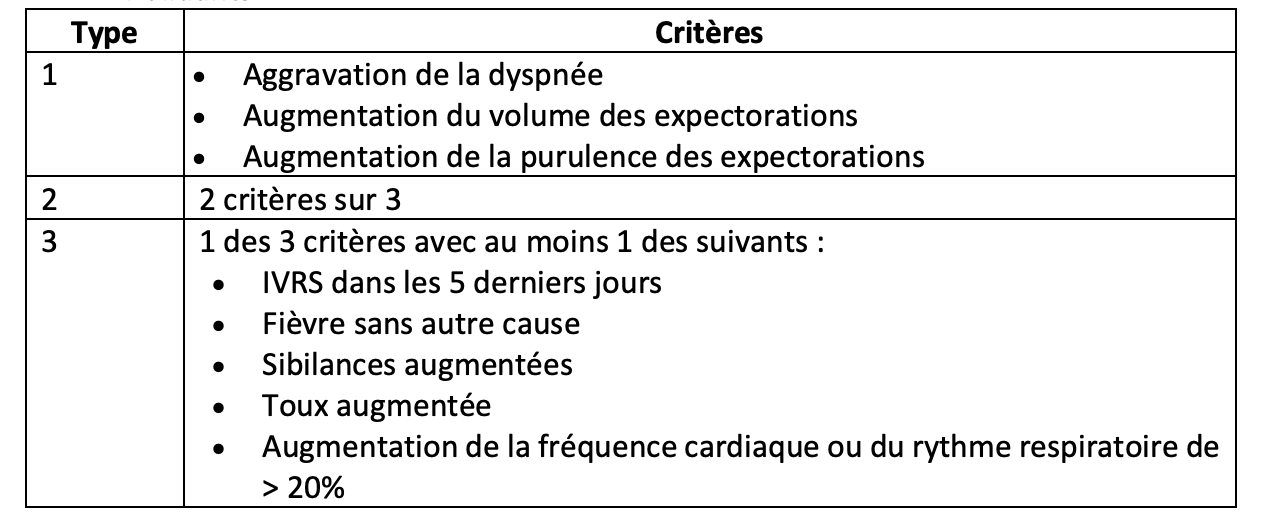 MPOC: Exacerbation aiguë - Critères diagnostics + types