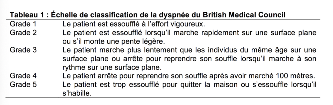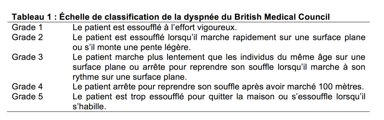 MPOC: Investigation - Évaluation de la dyspnée - Importance clinique