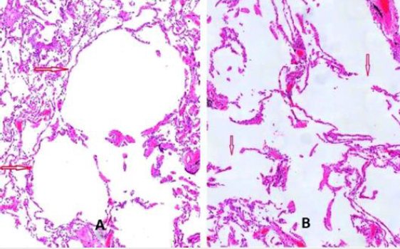 morphologie: acini uniformément élargis, des bronchioles respiratoires aux alvéoles terminales