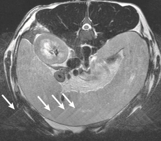 As a proton moves through a stack of slices they become more and more saturated. That means that slices the protons in the middle of the stack of slices will have less and less signal while the protons in the entry of stack have a large amount of signal