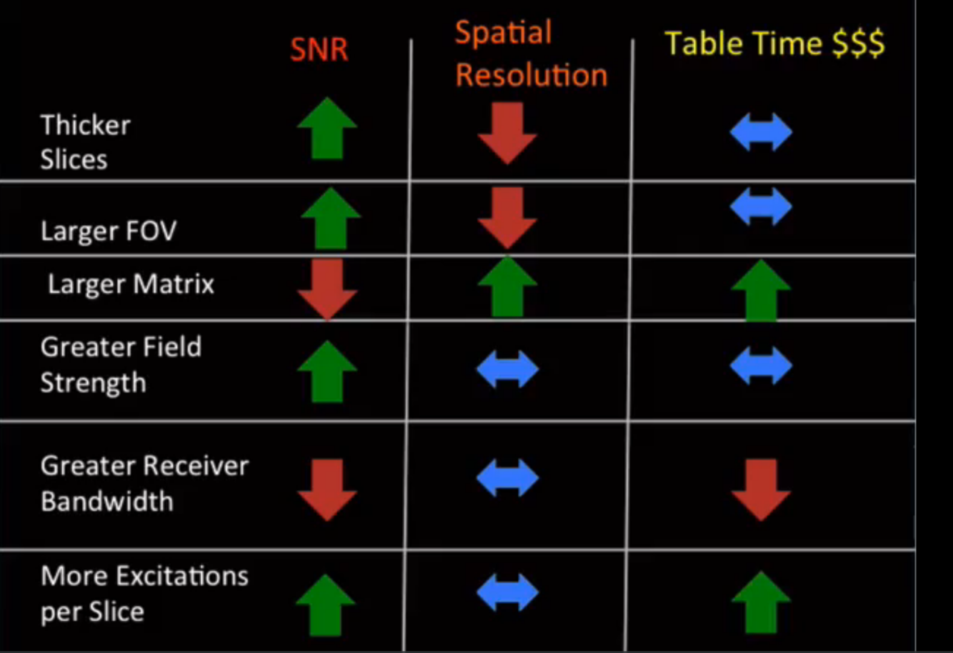 parameters that improve MRI SNR