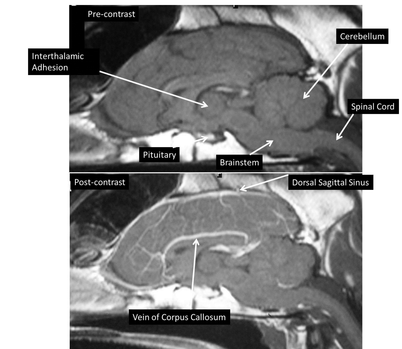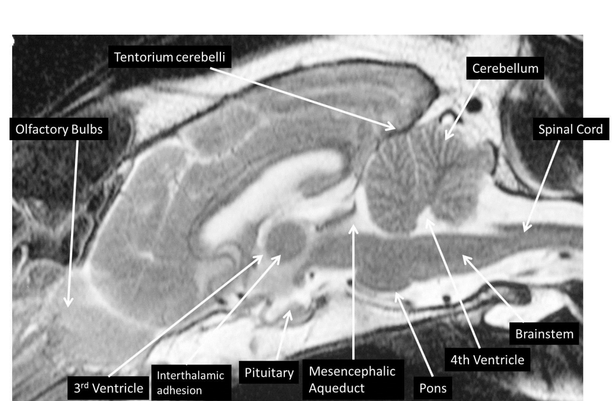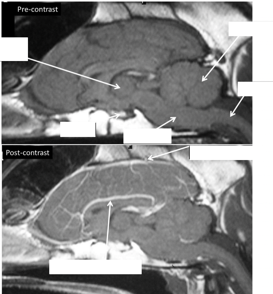 T1-weighted sagittal scans (fluid will be dark)