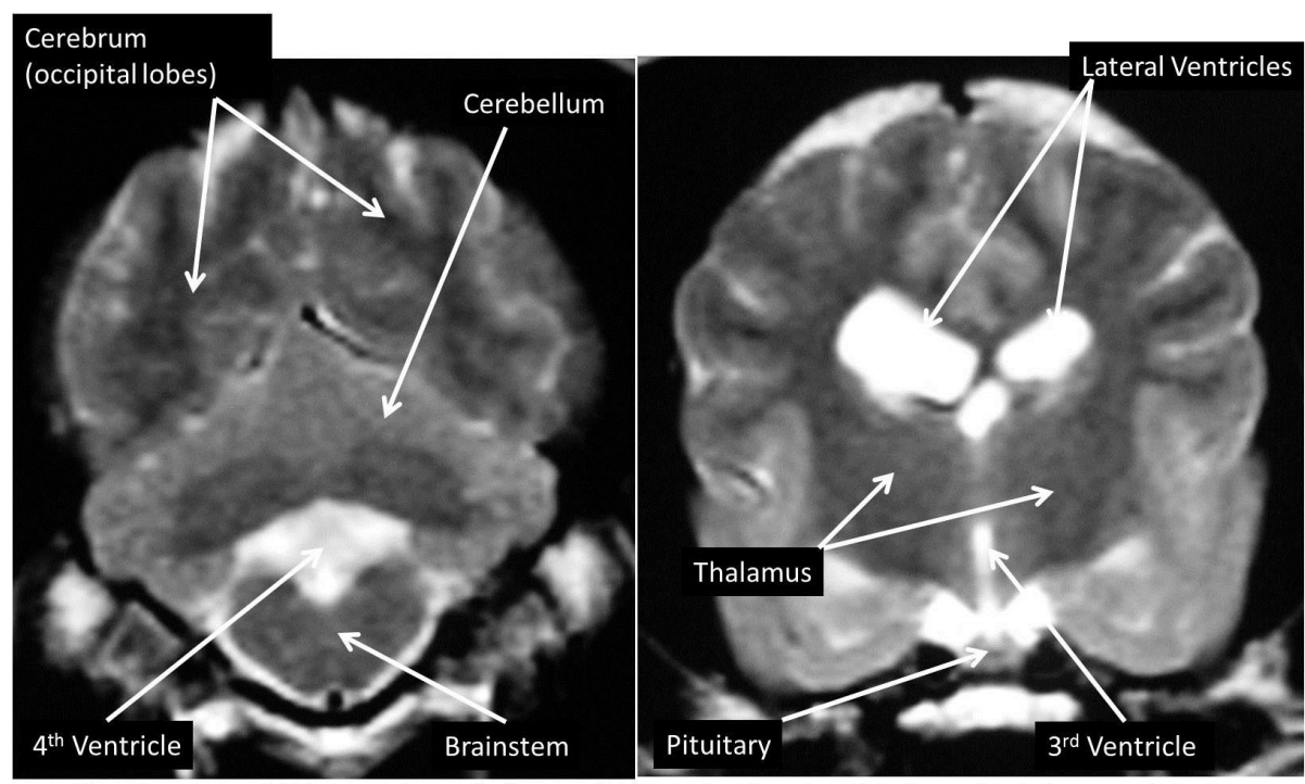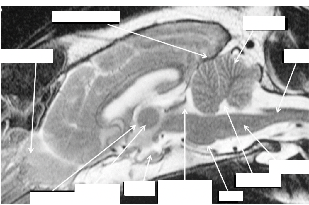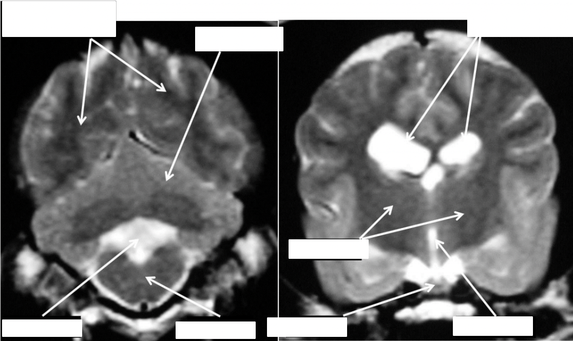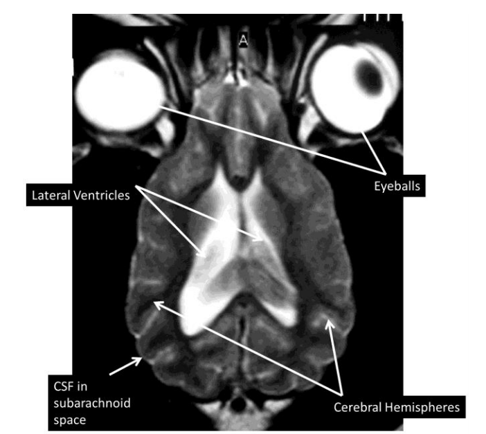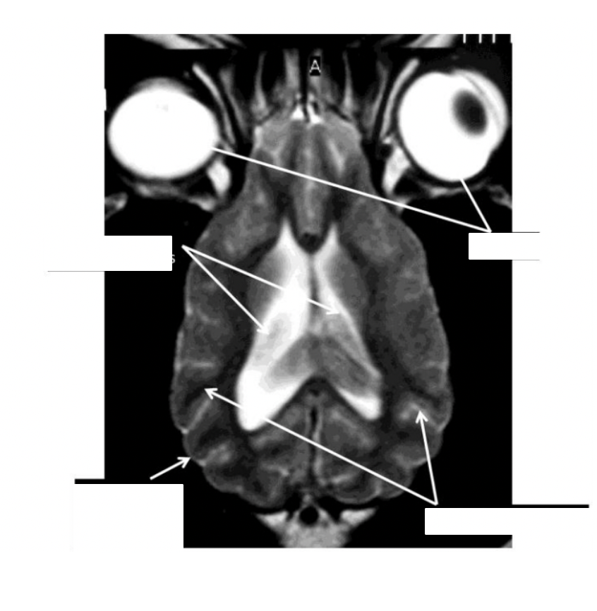 identify the lateral ventricles, pituitary, cerebellum, cerebral hemispheres, brainstem, eyeballs