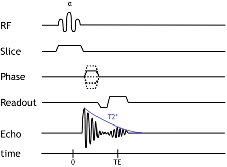 • TE controls T2* weighting, alpha (flip angle) controls T1 weighting