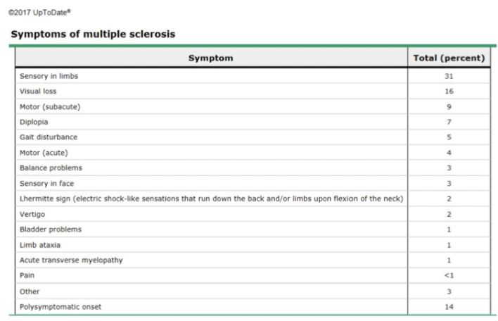 Hvilke symptomer må klinikeren være oppmerksom på ved mistanke om MS?