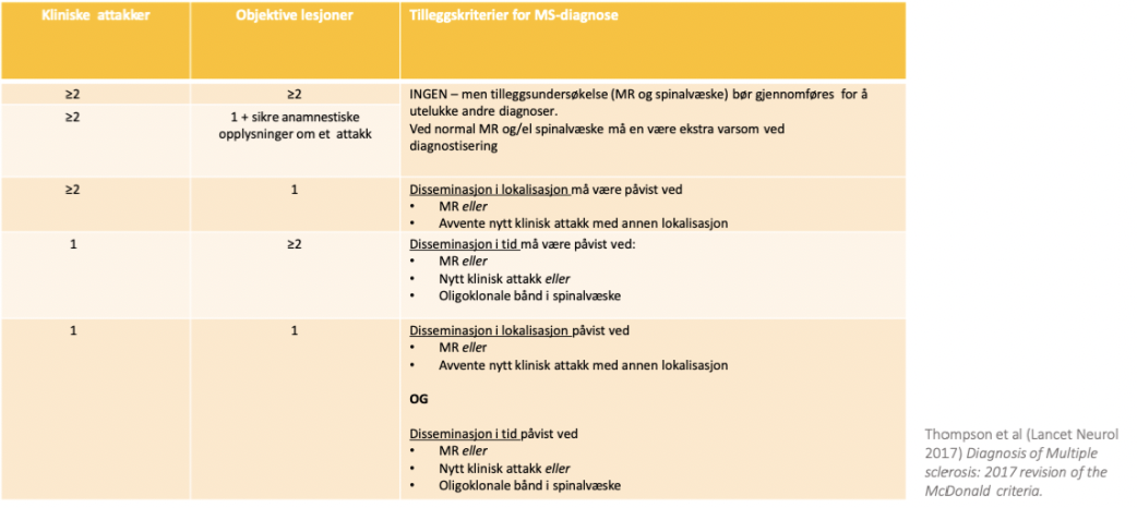 Hvilke diagnosekriterier har man for MS?