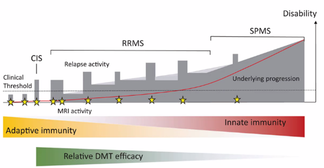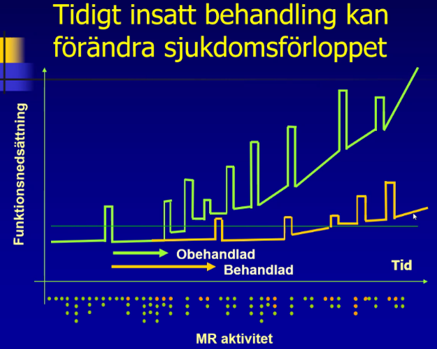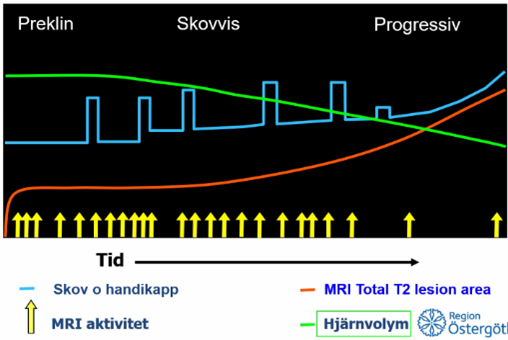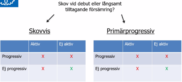 o Kan vara ej aktiv (inga skov) men ändå progressiv (ex med förändringar på bilddiagnostik eller inte). Det är aktiviteten vi kan behandla