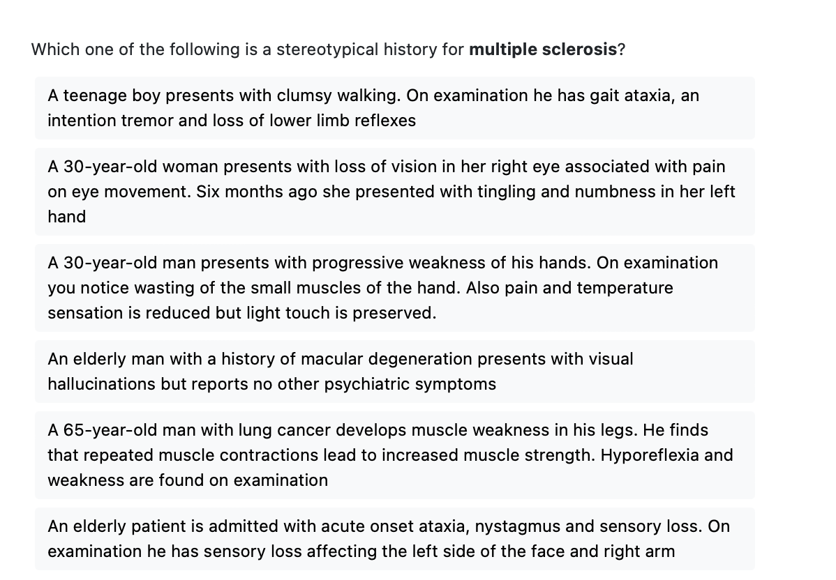- Examination may reveal internuclear ophthalmoplegia or a pale optic disc on fundoscopy