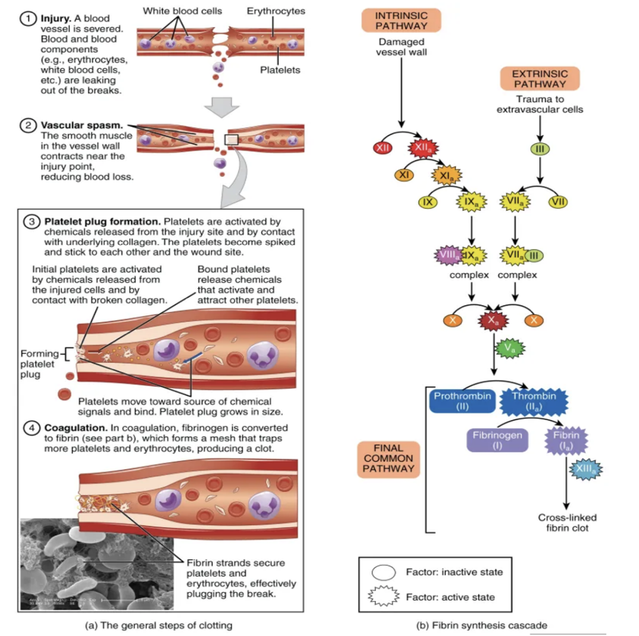 Explain the 3 basic steps of clotting cascade after there is injury to a blood vessel