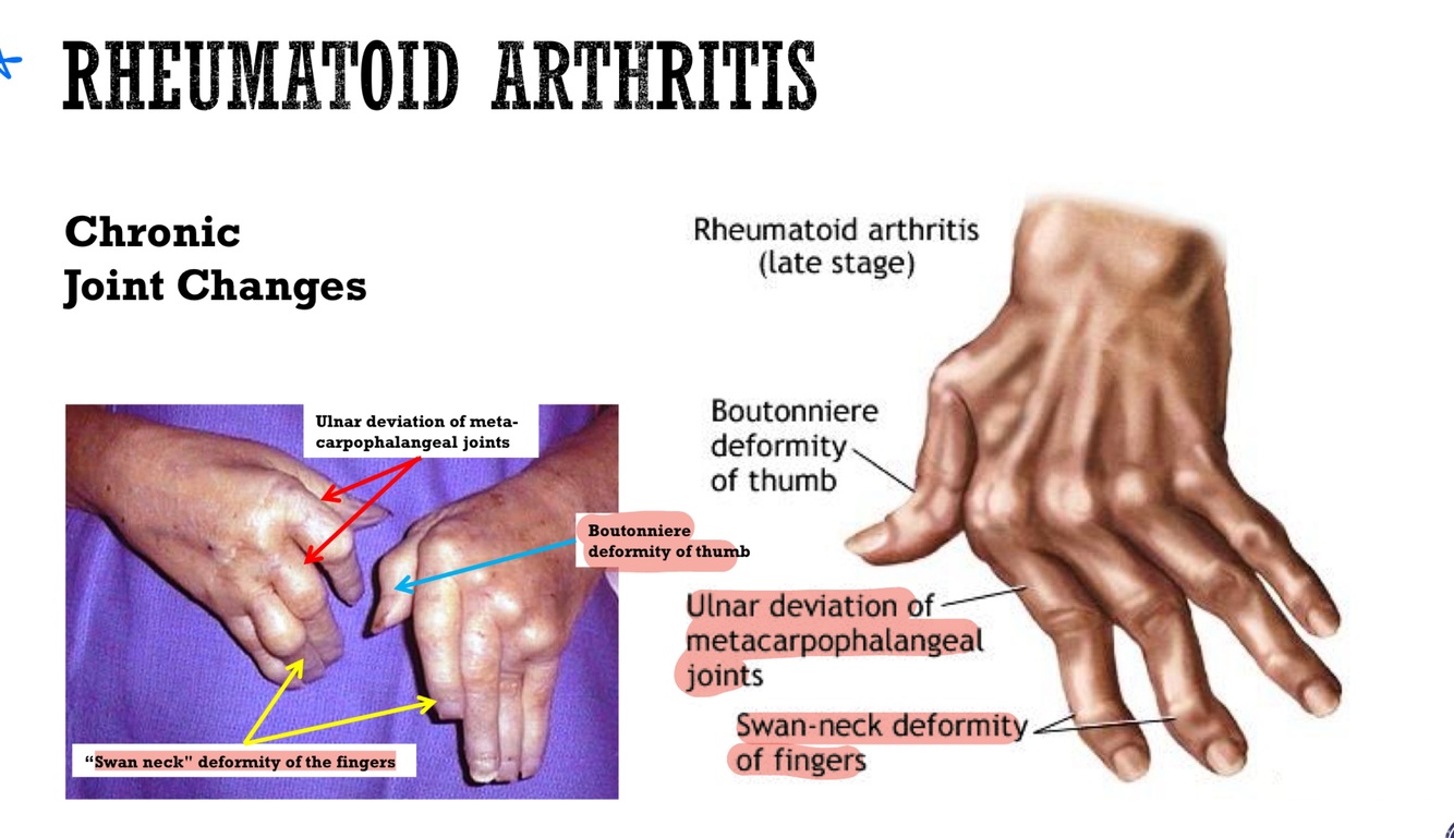 Chracteristic Chronic joint changes in Rheumatoid arthritis