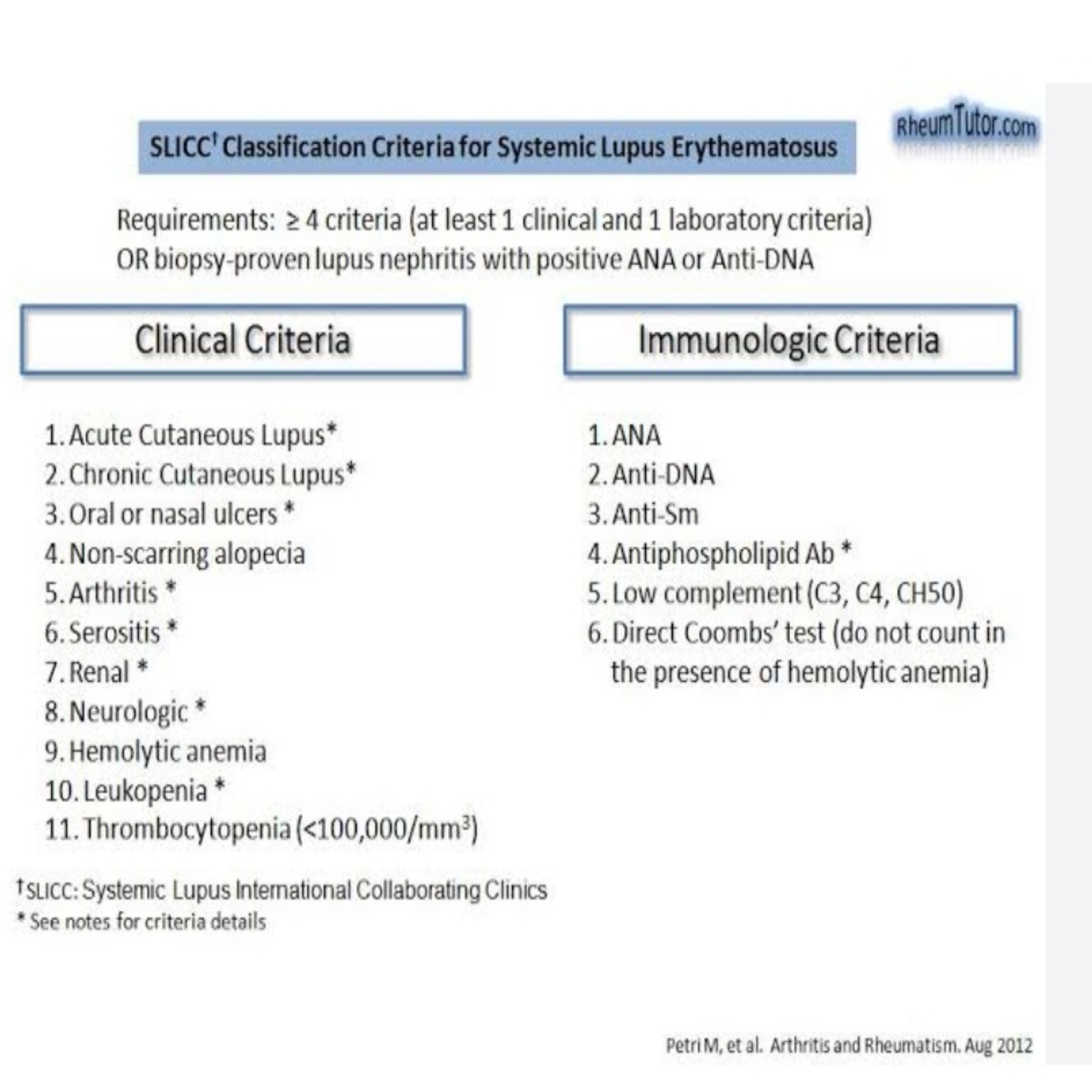 ○ Consensus diagnostic guidelines from the American College of Rheumatology (ACR) and the Systemic Lupus International Collaborating