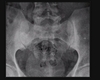 Osteitis condensans ilii (pubic instability) - benign sclerosis of the ilium adjacent to the sacroiliac (SI) joint, typically bilateral and triangular in shape. - BILATERAL, SYMMETRICAL