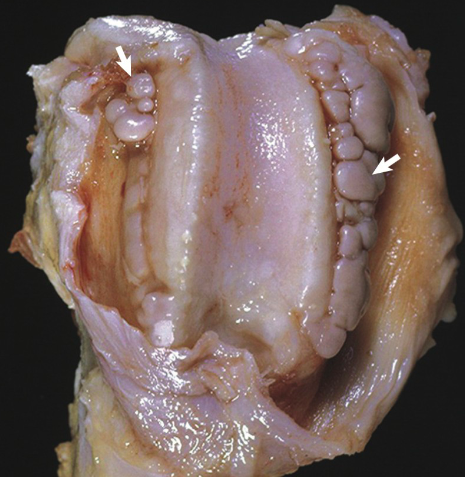 inflammation of the synovial membrane in response to cartilage debris is called: