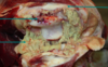 this is the joint surface. the green line is pointing to _____ and the black line is pointing to ______