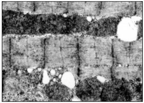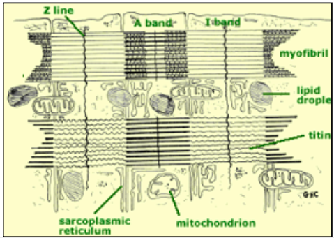 MITOCHONDRIA BETWEEN MUSCLE FIBRILS WITH MUSCLE FIBRES