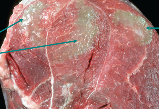 green discoloration due to eosinophils (bovine eosinophilic myositis)