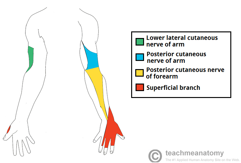 Posterior aspect of the arm and forearm, and the posterior, lateral aspect of the hand